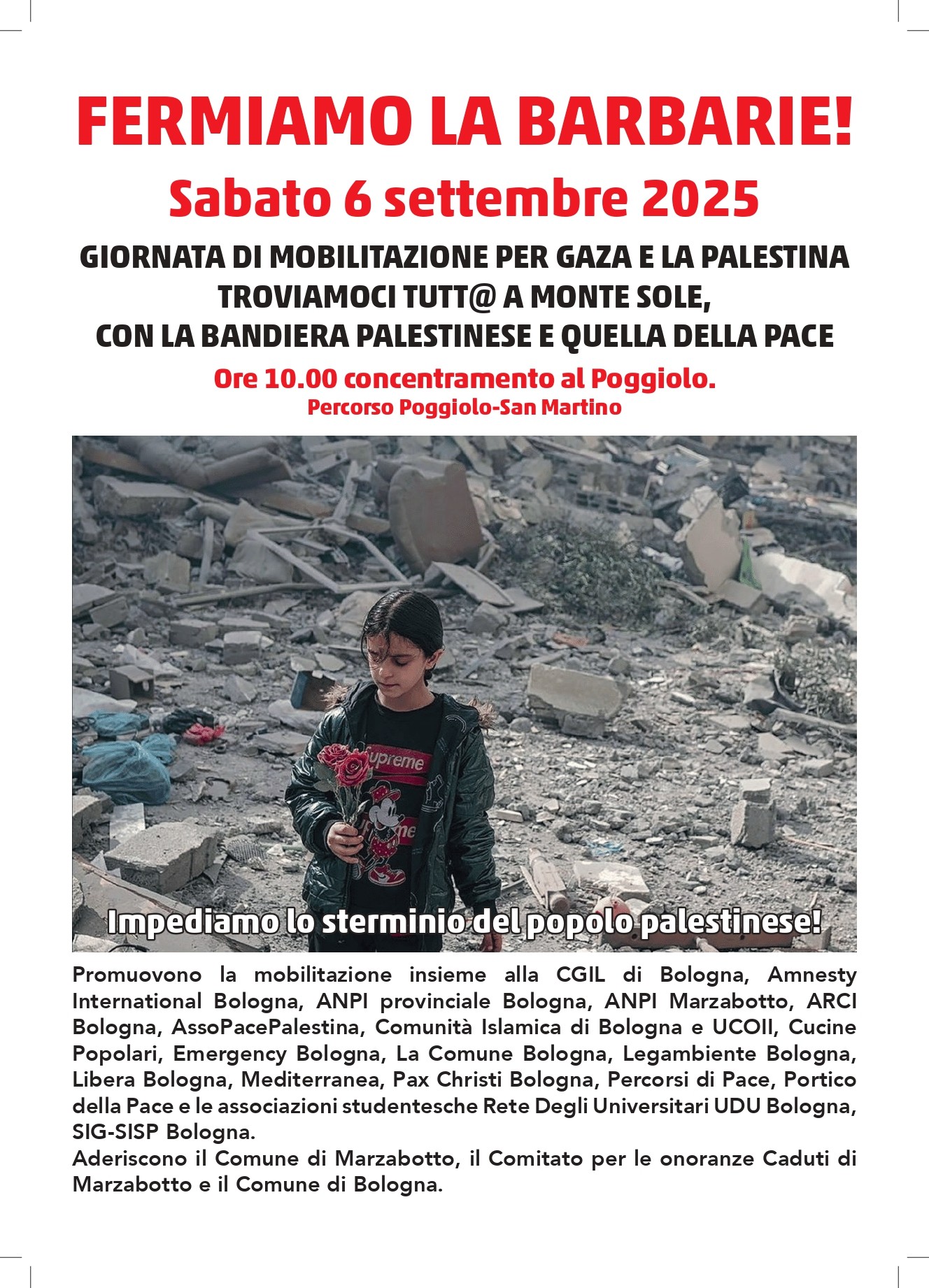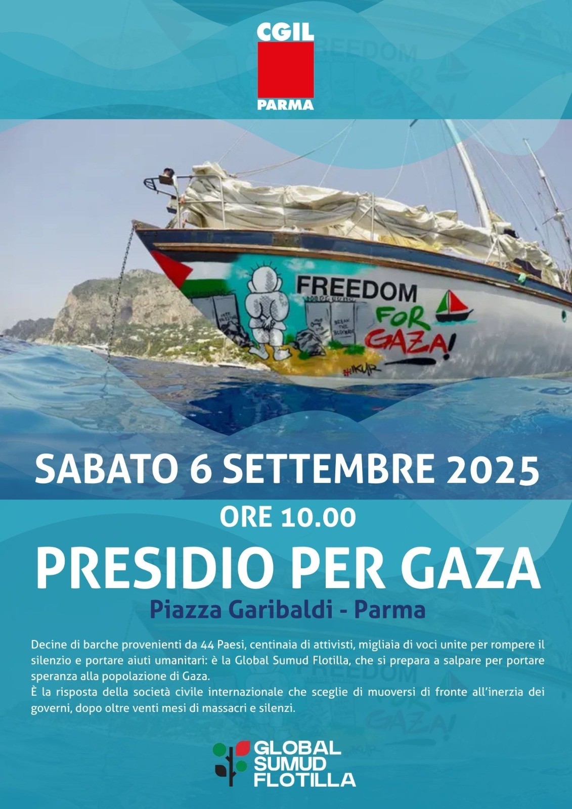 6 settembre 2025 "FERMIAMO LA BARBARIE" tutti gli appuntamenti Cgil in regione per fermare il genocidio in Palestina