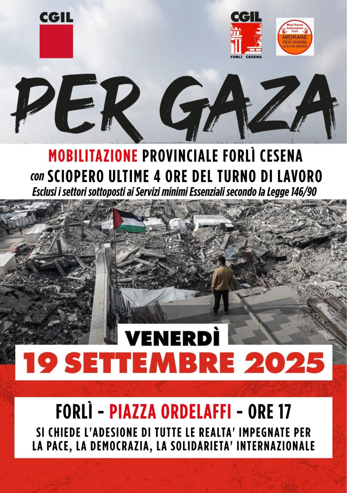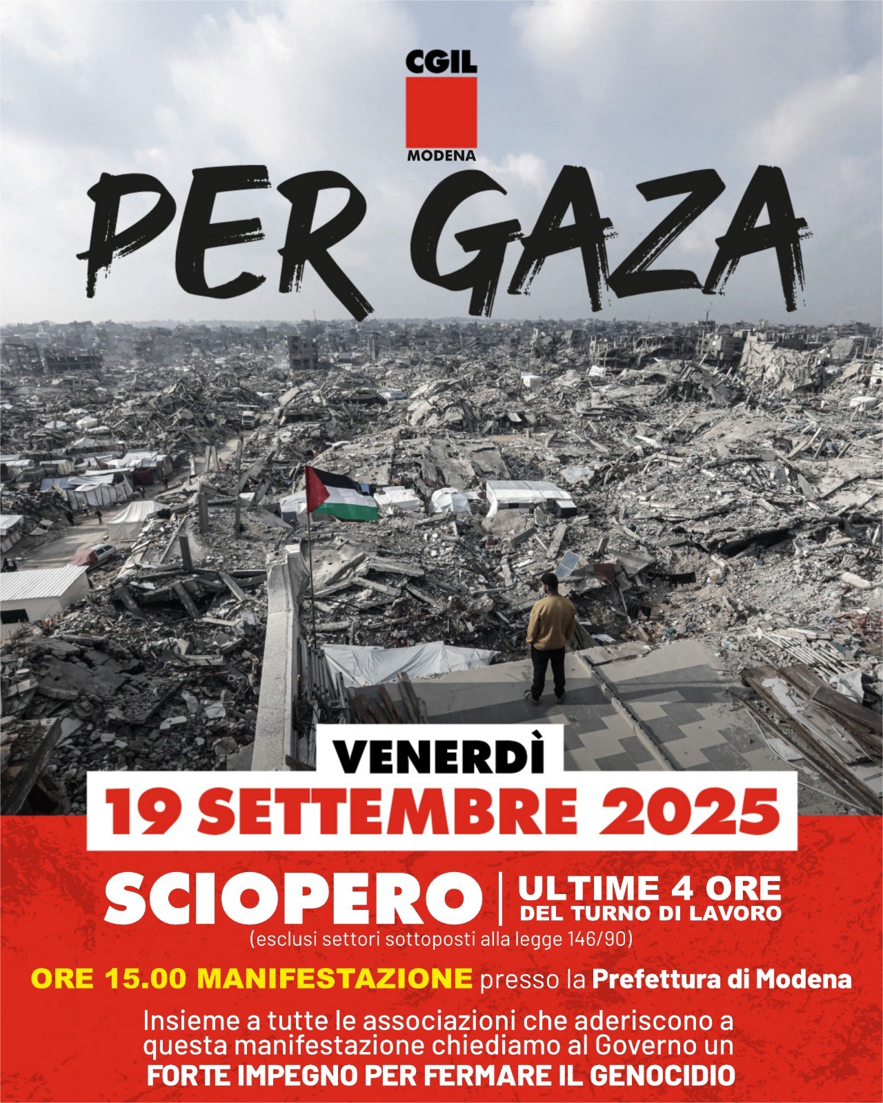 La Cgil, sin dall’inizio della guerra, ha organizzato e partecipato a tutte le manifestazioni a sostegno del popolo palestinese ma, a seguito dell’occupazione della Striscia di Gaza da parte del Governo di Netanyahu dopo mesi di stragi con un conto che si avvicina alle 80 mila persone uccise, ha deciso di proclamare mobilitazioni e scioperi in tutta Italia per venerdì 19 settembre.
